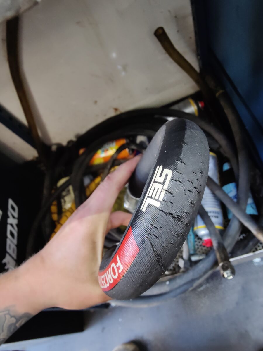 Puimuri akselin letku poikki. Uusittiin molemmat ja matka jatkui.