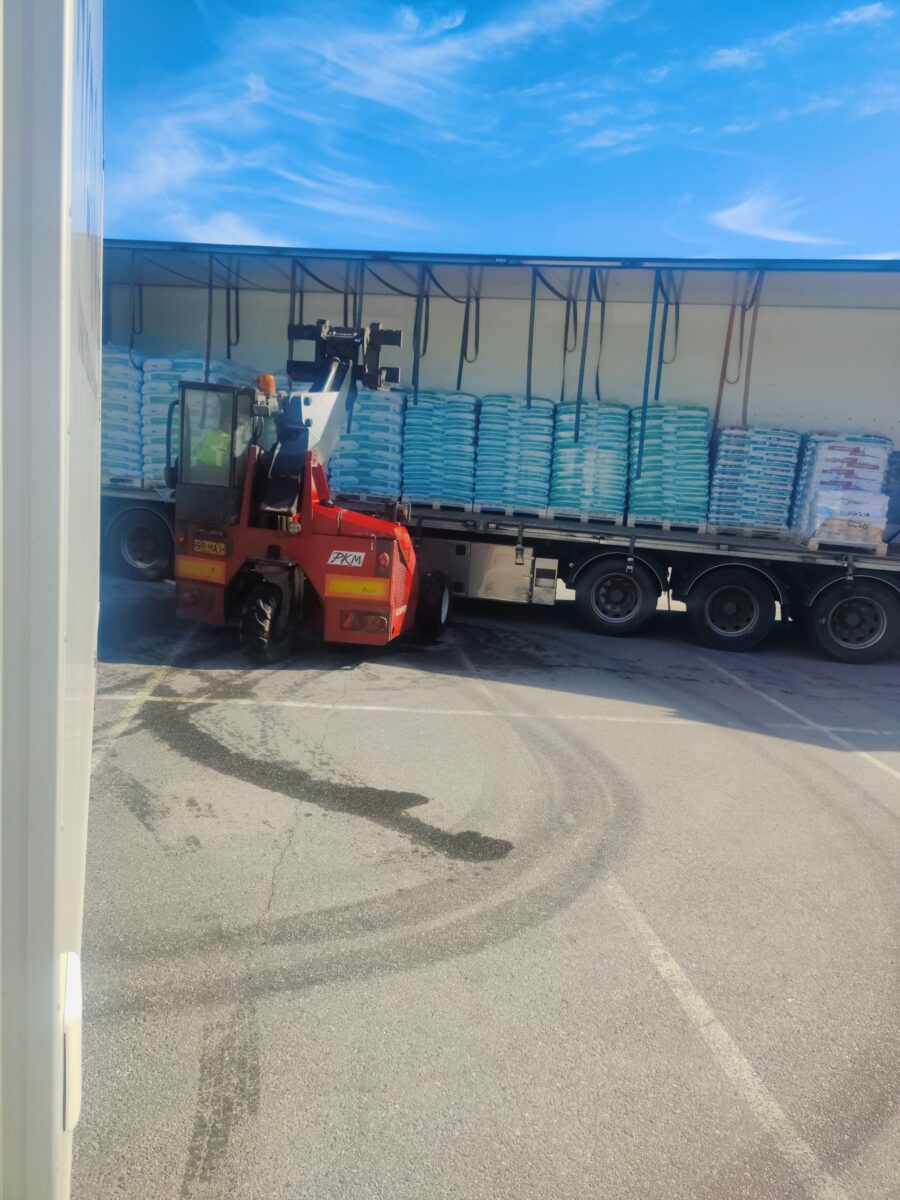Multa kuorman purku jäi kesken erään tokmannin pihalla kun trukista räjähti ajomoottorin letku