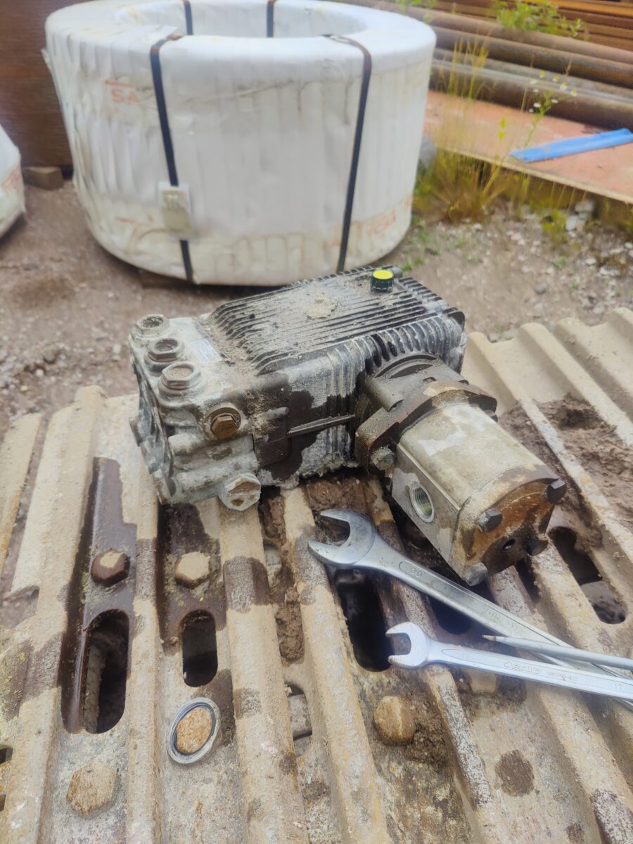 Liebherr P2 pumpun vaihto, model 934 (uusi pumppu ja vanha pumppu)