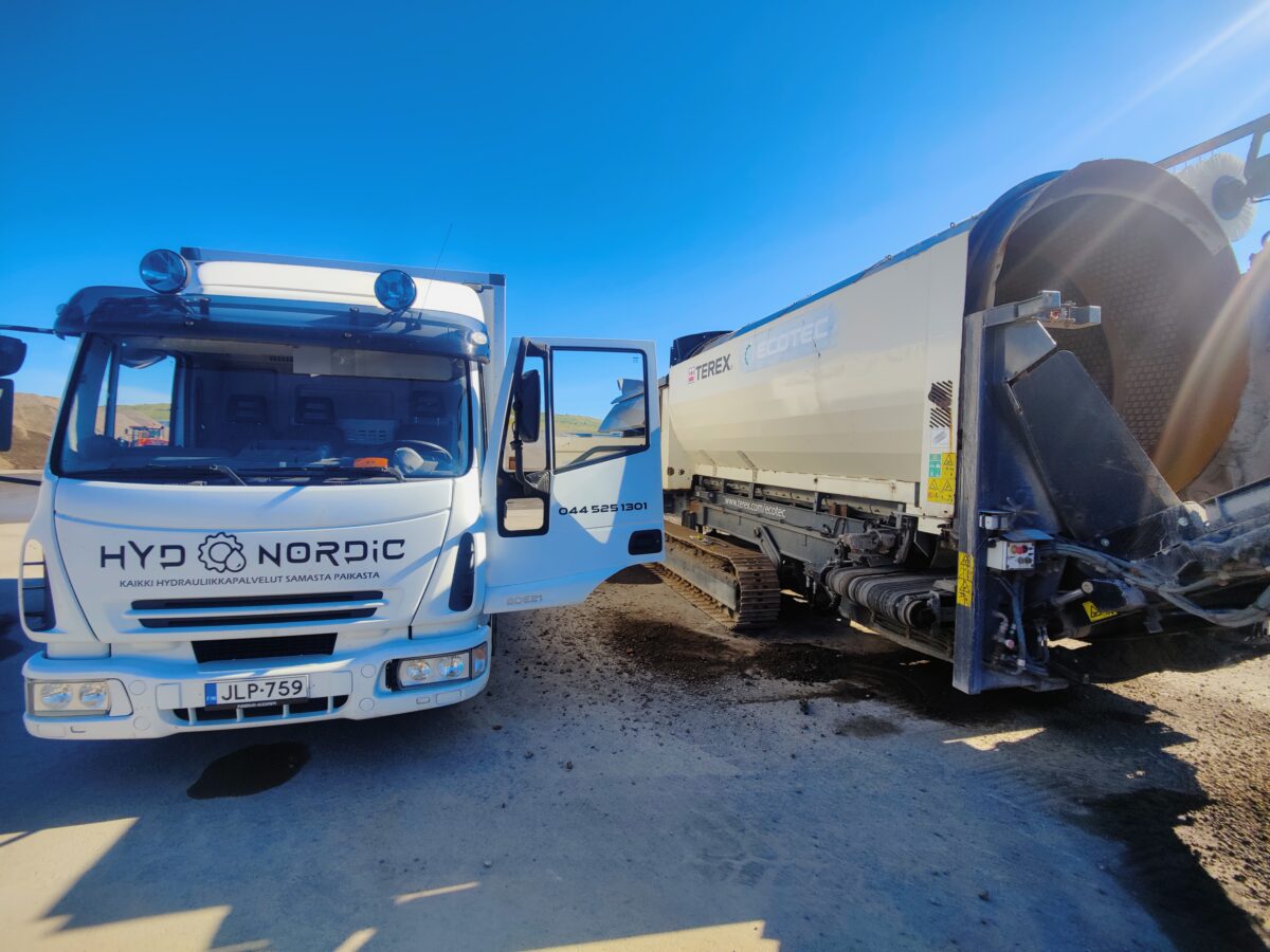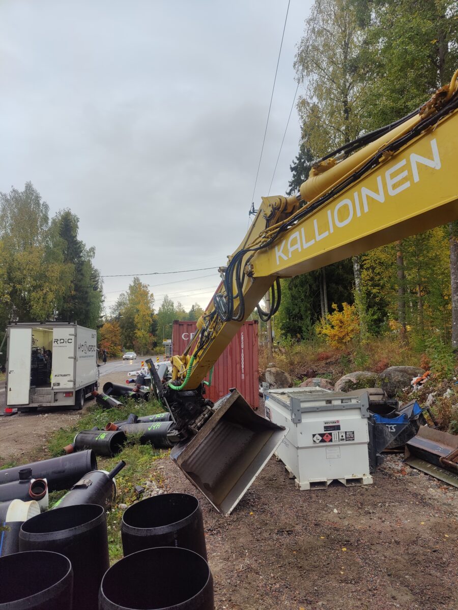 Ojakkalan kaatopaikalla pyöräkoneen öljyvuodon korjausta.
